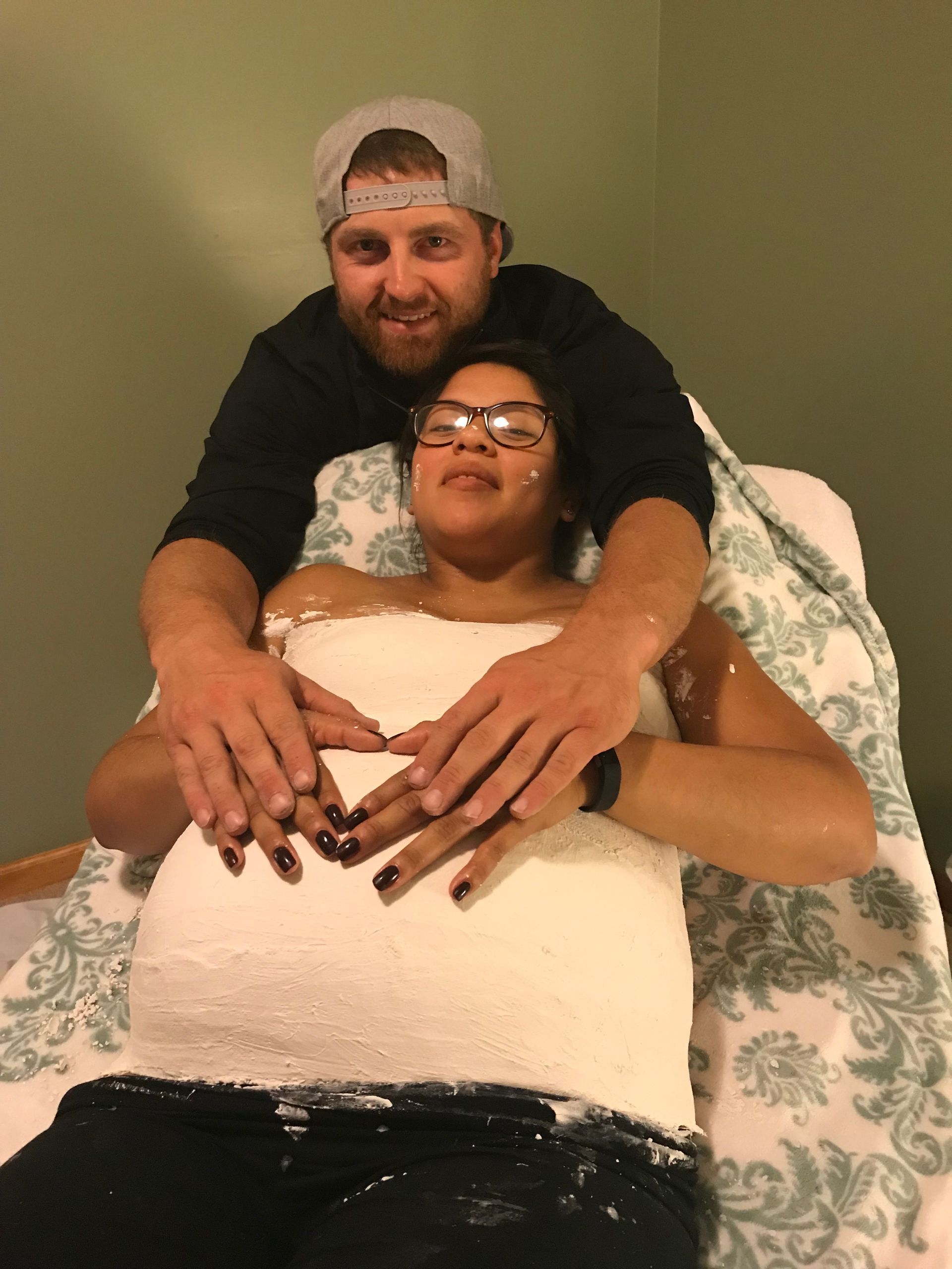Belly casting can be done in the privacy of your own home, or you can come to Treasured Birth’s offices and leave the clean up to us!